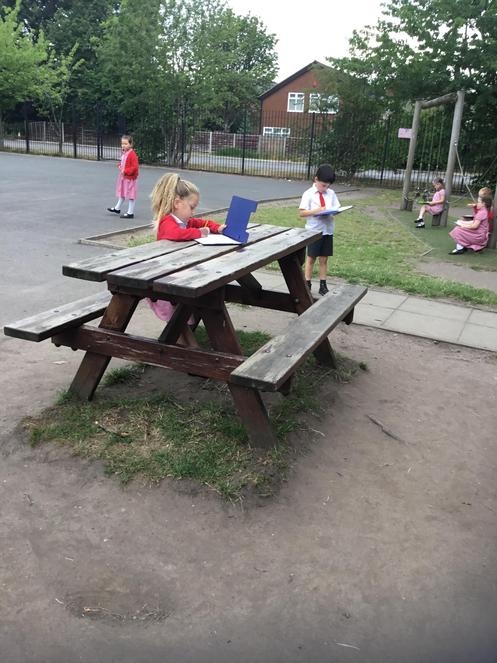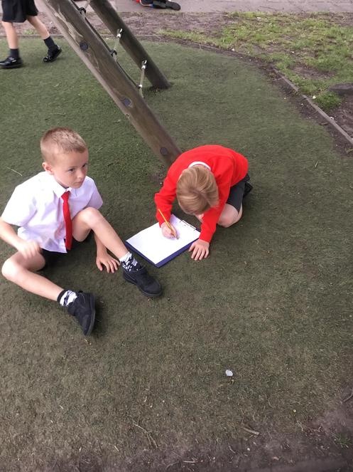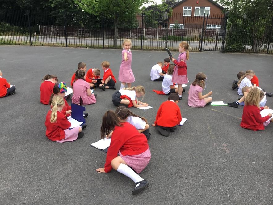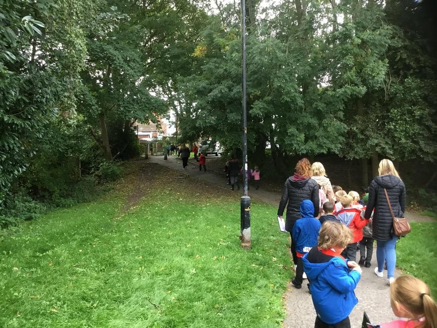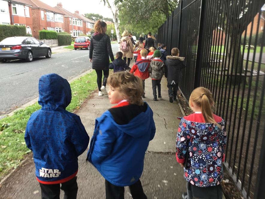 As part of the Key Stage 1 topic "Street Detectives", children went for a walk in their local area as a class to note important features of their local area such as parks, Flixton House and Flixton train station.
