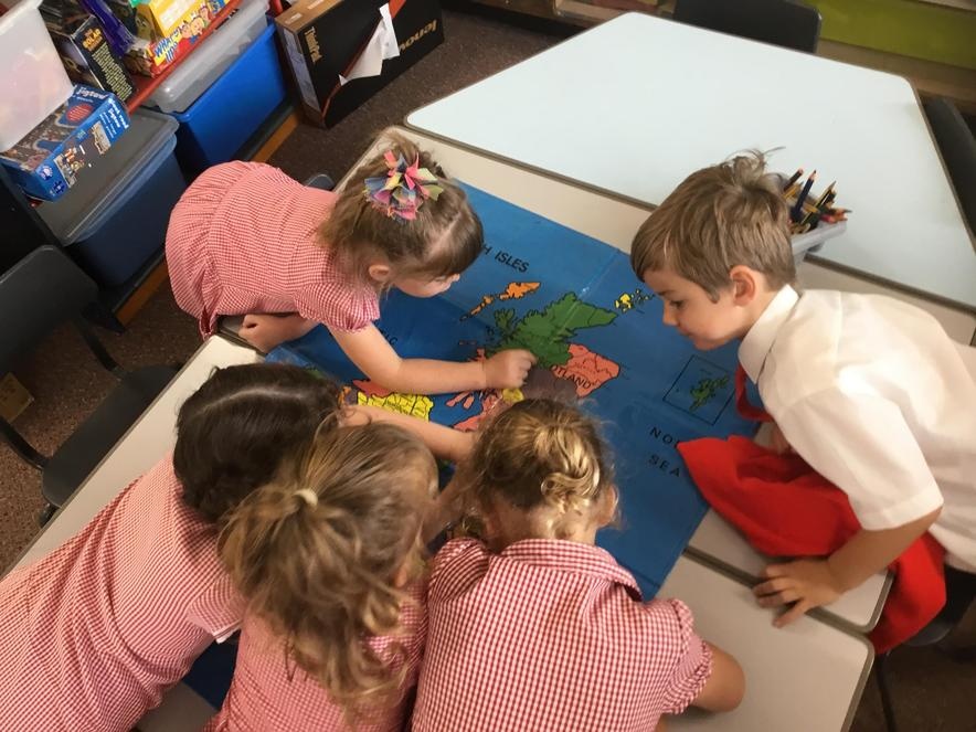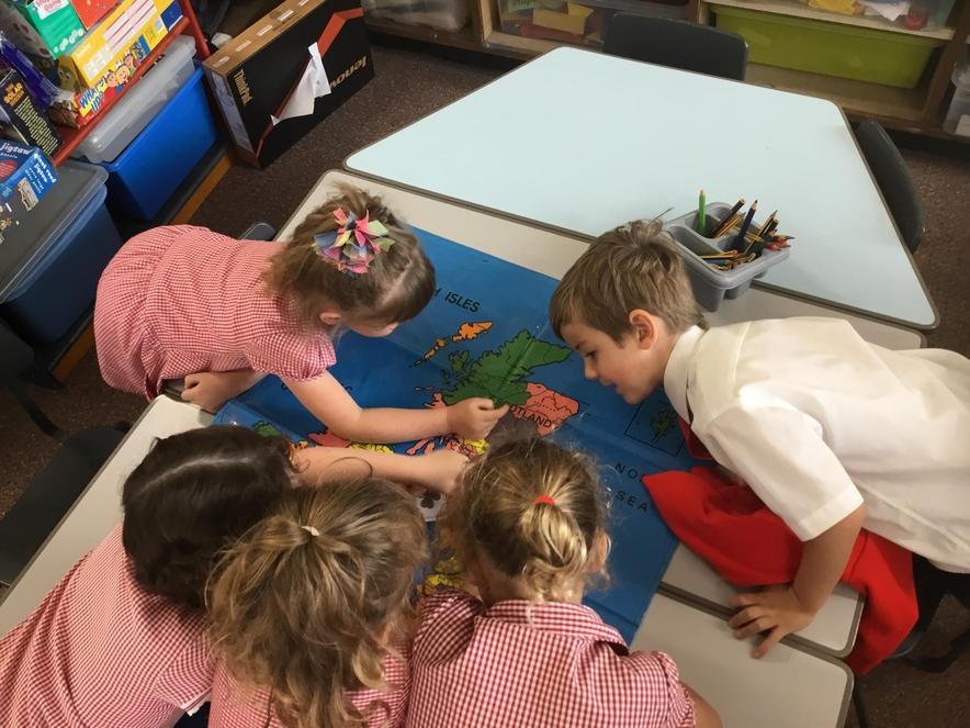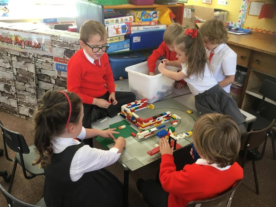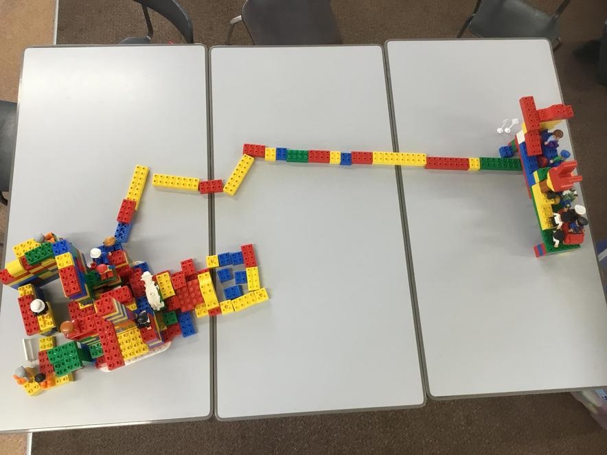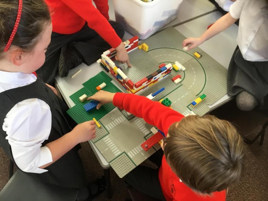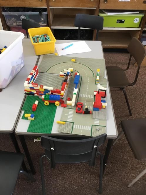 When they returned to class, they worked in teams to build their local area as best as they could using building equipment and begin to understand the bird's eye view from above. They then created simple maps of the area, choosing some features to include in their maps.